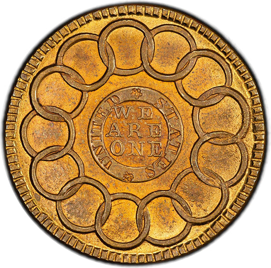 (919) 1787 Fugio 1C N-104-FF Brass New Haven Restrike PCGS MS65