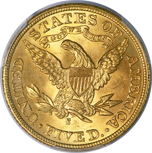 (10097) 1837-42 $5 C. Bechtler, 134 Grains, Star PCGS AU55