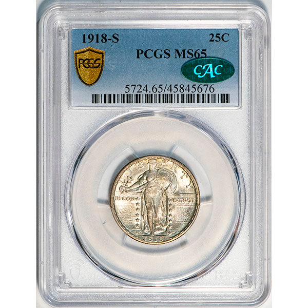 (5724) 1918-S 25C PCGS MS65 CAC